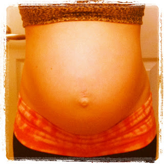 The belly is measuring 40" around this week. Little less than last week. Could be due to the fact that Caitlin seems to be losing weight in other places (love handles & back fat disappearing-YAY) from being back to work and active....So far her weight gain is 14-15 lbs..... Depends on time of day:-). We get to see this little one on a 3D/4D ultrasound in about 5 hours! CAN'T WAIT!